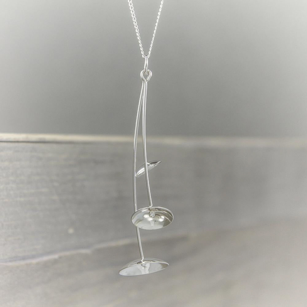 Three sterling silver domes hung from a sterling chain. Longest drop measures 2 3/4" long.